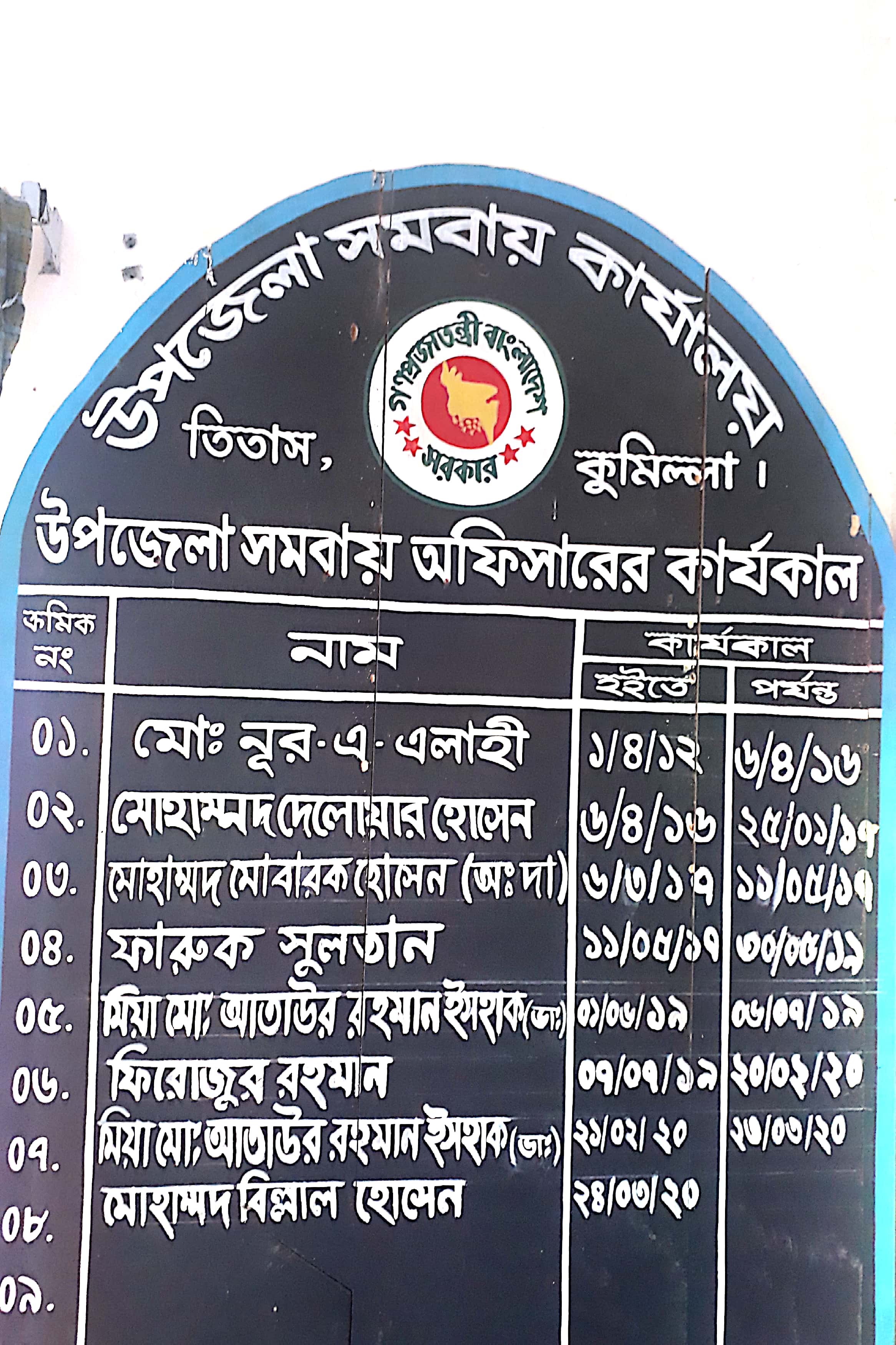 উপজেলা সমবায় কার্যালয়, তিতাস, কুমিল্লা এর প্রাক্তন অফিস-প্রধানগণের তালিকা নিম্নে প্রদর্শন করা হলো।
